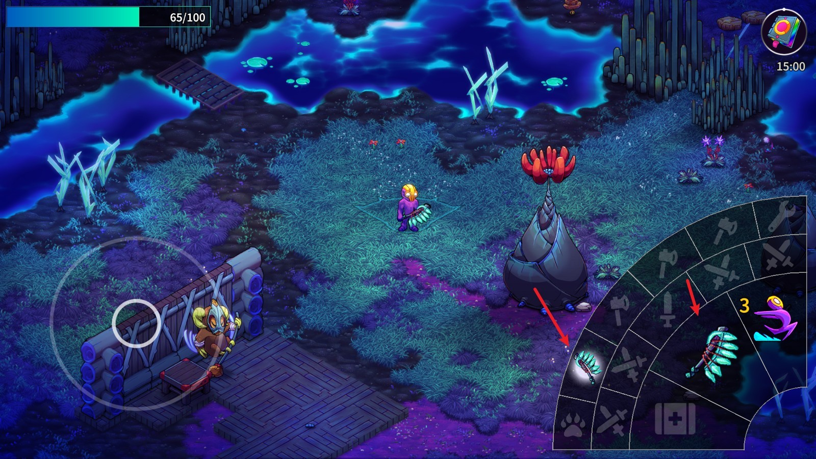 2、游戏中通过左侧的摇杆来控制人物进行移动。
