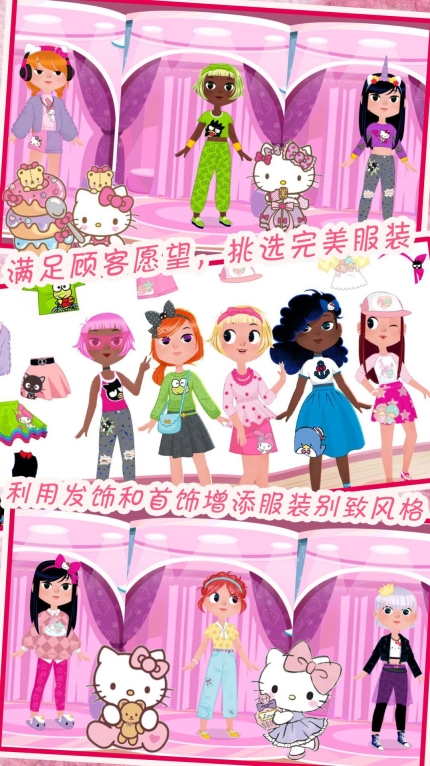 1、此次我们将与可爱的凯蒂猫一同经营服装店,致力于为顾客打造时尚的装扮造型。