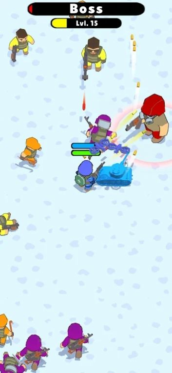 1. 通过随意滑动屏幕来操控恶棍移动,一旦敌人进入射击范围,便会自动进行射击。