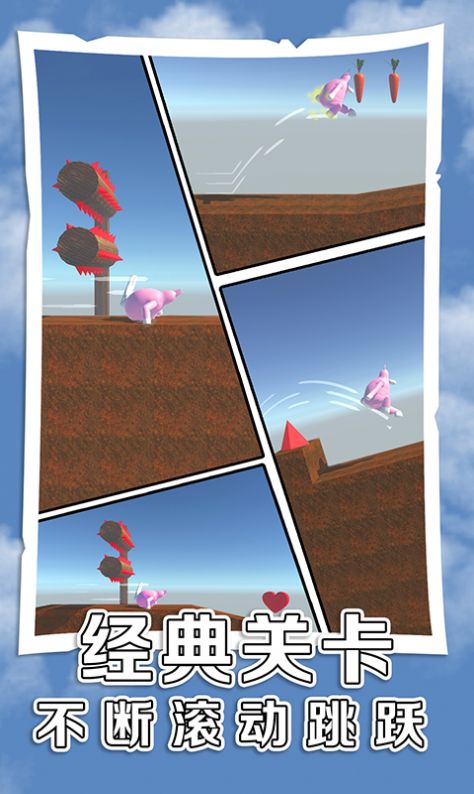 2、于各类不同场景中展开自由冒险,操控兔子人持续跳跃,从而躲开所有陷阱。