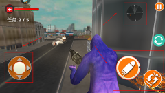 游戏操作:左侧为前进控制方向,右侧上方圆盘为瞄准方向,右侧下方子弹图标为发射,切换图标为切换枪支;