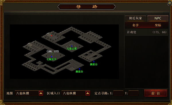 2、于八仙纵横地图之中,设有两个摘星台传送门,需先传送到摘星台,方可进入九重云霄。(亦可通过商城花费50绑定元宝购买通天卷轴,直接传送至八仙纵横。)