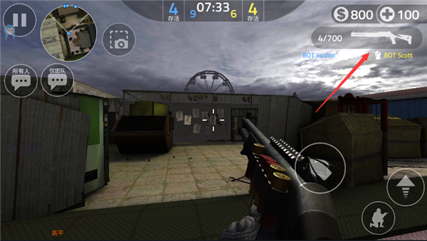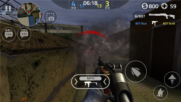 8、眼睛别忘了看小地图,敌人如果没有装备消声器开枪的话会在小地图上作为红点出现,且会持续一段时间,红点还会跟着敌人的位置有所移动,哪怕敌人已经停止射击