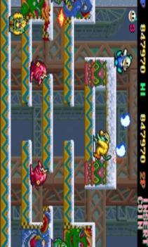 1、扮演雪人兄弟,穿越十个不同的关卡,每个关卡都有固定的boss战和丰富的道具系统。