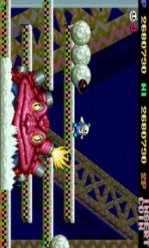 8、如果玩家只使用普通攻击的话,是无法将BOSS击败的。而且每一关的BOSS战的效果都一样,拖到时间结束直接过关。游戏中唯一一个普通攻击可以敲死的BOSS在最后一关,而且只有左边的BOSS可以。在击杀之后玩家可以跳过去一边刷分一边拖延时间,完全不用理会另一只BOSS,等待过关就可以了。