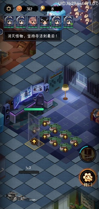 一开始,先利用技能将门升级至2级,等鬼出现后无需理会,径直把床升到3级或者4级,接着在门口放置8只熊,随后把门升级到5级,再将床也升级到5级。此时,鬼的等级还不到4级,只需把所有炮的等级提升至比鬼高一级就行。