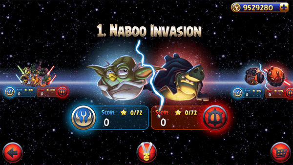 1. 深陷其中的震撼体验,探索超80关的地图,领略极具特色的星球,像塔图因星球、猪头星等。你能否抵御帝国的猪、激光炮塔、塔斯肯袭击猪以及原力的黑暗面,从而获取全部三颗星呢?