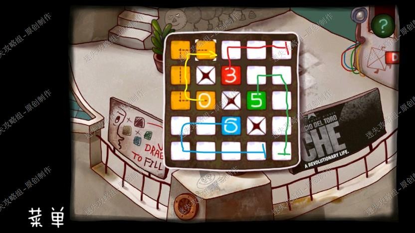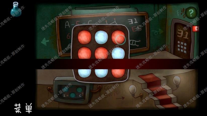 8. 在右边的门上输入我们之前在显微镜获得的线索图案,打开门,把墙上的记忆碎片拿到手,回到黑板处往下走。