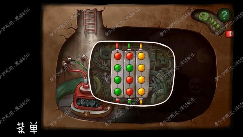 21. 回到拿到电池的工厂里,把十字架放入方块中,按下按钮,拿到绿色方块那里,点击墙上方块根据如图位置的图案,保存进度,进入下一章