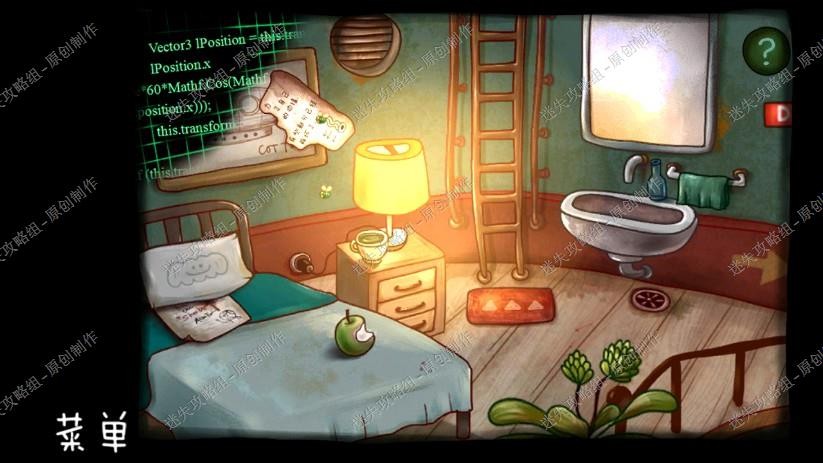 1. 我们在自己房间醒来,于地上拾起自己的日记。接着点击镜子,看到台灯后,把台灯后面的插头插上,再次点击镜子,会看到密码210x(这里的x需拉开抽屉第一层查看,实际为5),由此得到完整密码2105 。由于是从镜子中看到的倒影,所以真正的密码应该是2015(作者构思好巧妙)