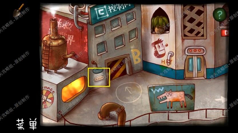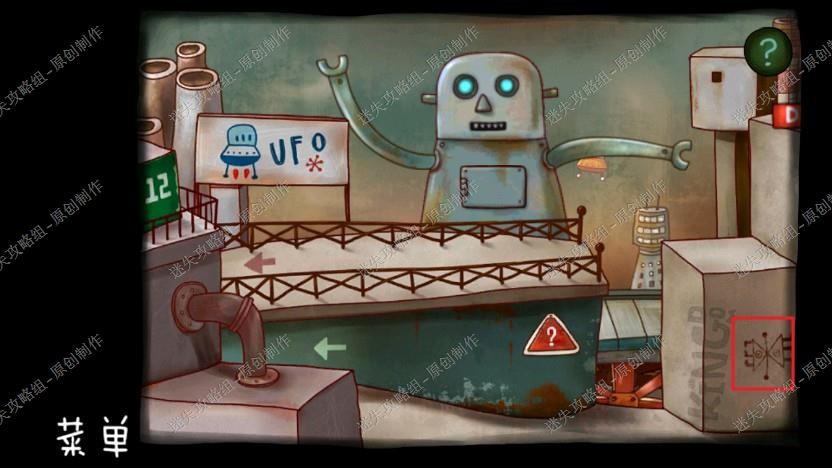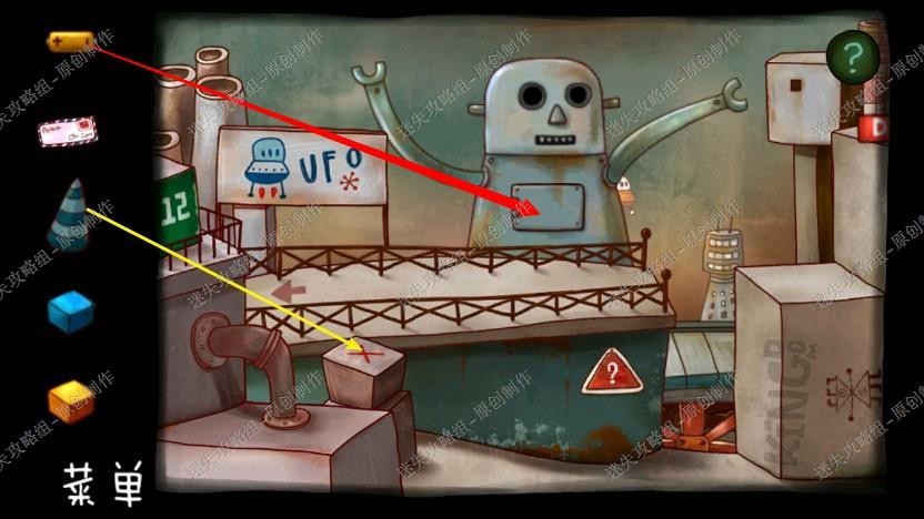 18. 来到工业区继续往右走,把帽子放在x处,把电池放进大机器人中,再点击一下右边的胳膊拿到一个红色方块。