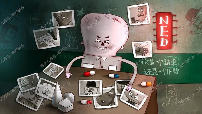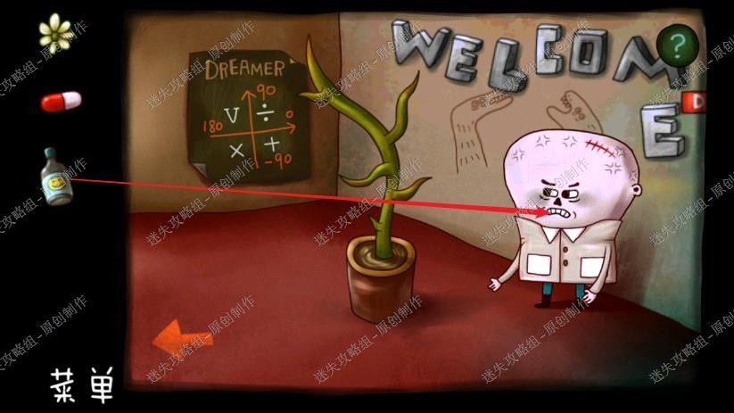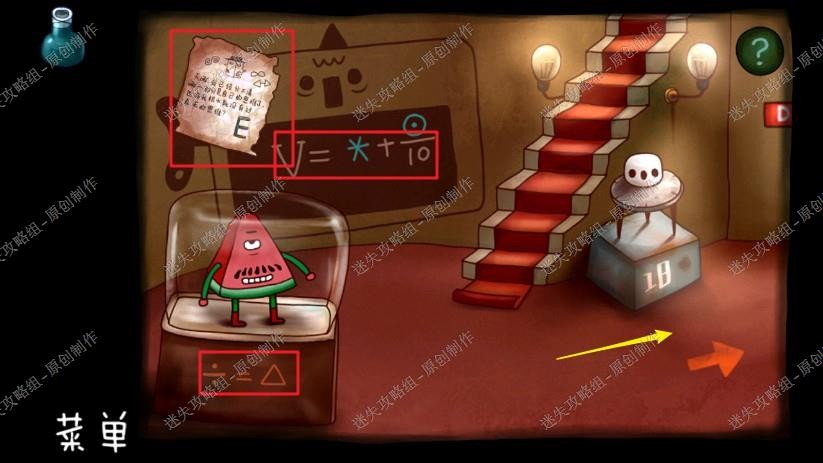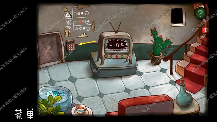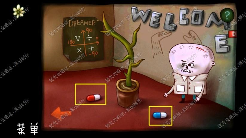 9. 来到下面后,先把墙上的记忆碎片拿上,周围的方程式要记住,往右走,把蓝色药水给博士,把小花摘下,拿走墙上的照片,记住墙上的方程式。