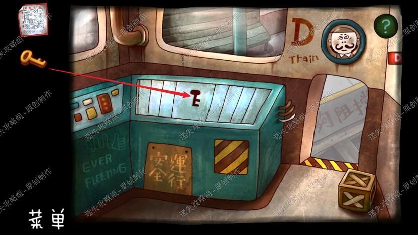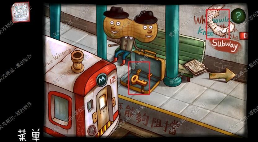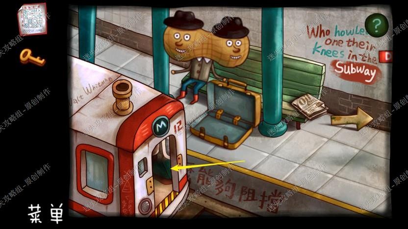 16. 去找草莓小姐,把小花给她,拿到记忆碎片,在黑板上看到I=d2b1,记住,继续往下去车,把头给花生,从手提箱里拿到钥匙,右上角拿到记忆碎片,我们点击进入车厢。