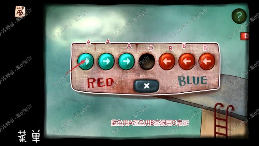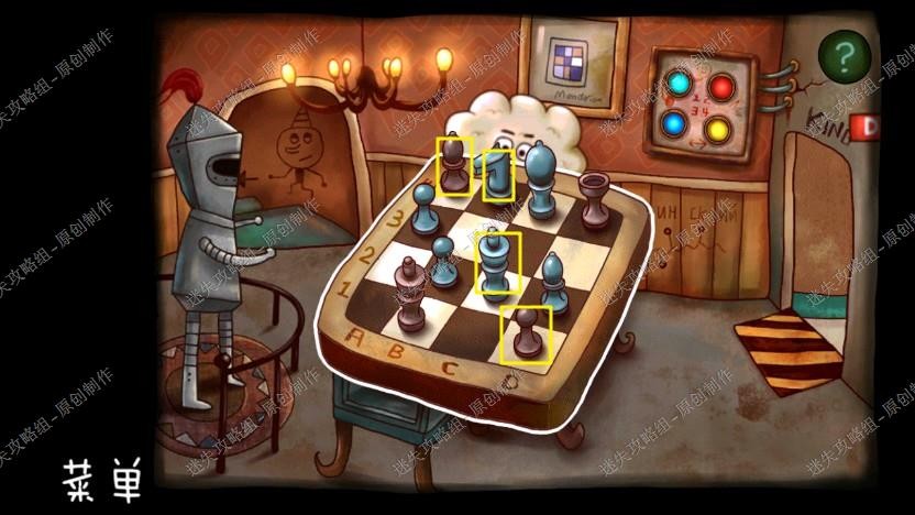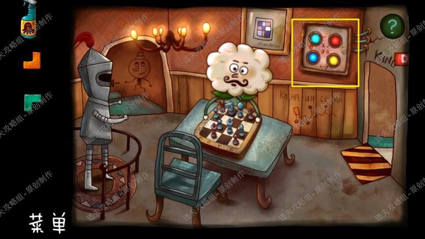 7. 在二楼上我们把棋子放入棋盘,根据刚才电影里拿到的颜色顺序填入,开启右边通道,进入。