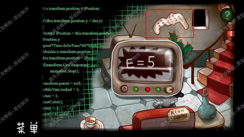 10. 回到过道机器人的地方,把照片给他,拿到发条往左走,把发条给桌子上的机器人,根据之前的得到的公式推算出V=4.5我们回到之前的电房。