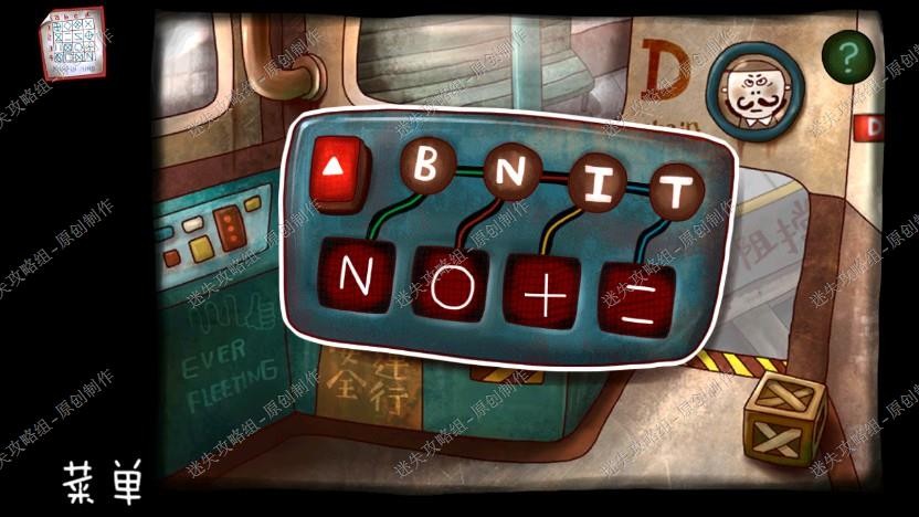 17. 将钥匙置于操作台。依据此前房子里的标识,并与密码图纸相结合,可知BNIT对应特定图形组合。按照前面墙壁上所提示的组合方式,把两个图形组合起来后,橡胶部分会消失,剩余部分会合成新图案。小伙伴们不妨去尝试一下,在此就不多赘述了。密码是NO+=,请前往下一个章节。