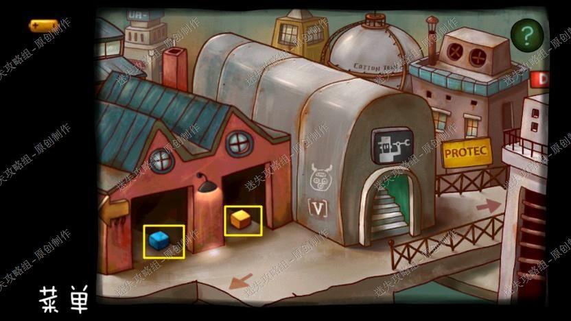 17. 回到外面,看到一号二号仓库开了,拿走蓝黄两个方块,回到广场那里拉下操作杆,下电梯,拿走地上的信,房顶的日记和土豆的帽子,上去。