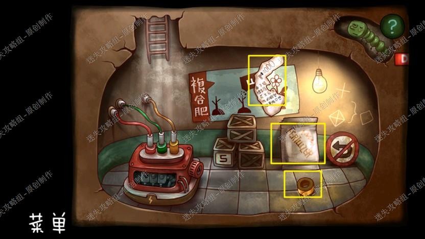 12. 从烟囱上爬下去,在下方机器完成游戏(先把最右边的黄色完成),拿到日记,胶带和化肥。