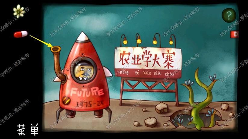 12. (蓝色胶囊结局)回到病房,把蓝色胶囊给南瓜先生,获得药水,回到地下给博士,顺着藤蔓往上,把小花塞入火箭中,飞上天结束。