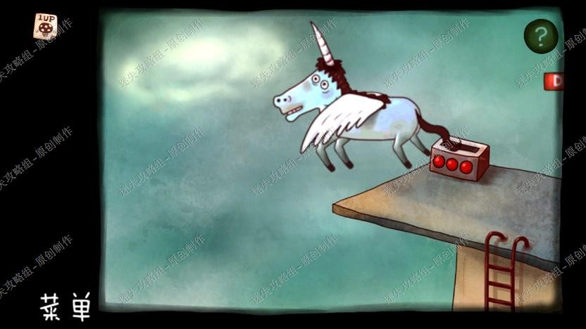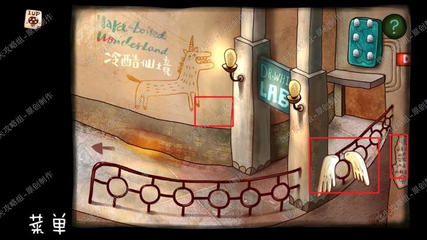 1. 在右上角拿到记忆碎片,往右走,在扶手上拿到翅膀,墙上拿到蘑菇图片,最右边拿到记忆碎片,回到列车网上爬,把翅膀给独角兽。