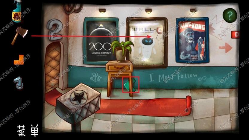 6. 用锤子打破左边木板拿到蓝色药水,右边墙上的记忆拿走,继续向右走。