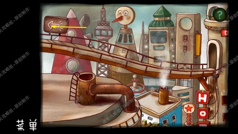 15. 来到新地方我们发现没有任何线索,只有时钟可以点,我们先去右边的工厂区,进入图中机器人工坊,显示器上方手册,看到时间14:35回到广场,把时钟调整好。