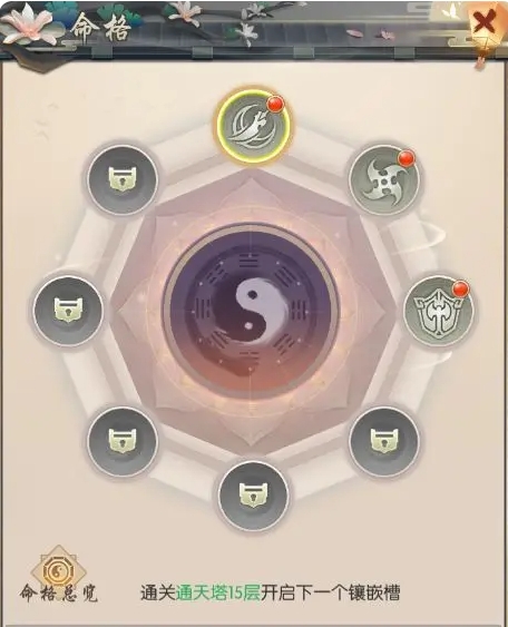 1、通关【通天塔】玩法可开放更多的命格镶嵌槽位以及命格;