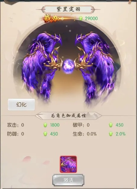 3、翅膀也可用过使用不同级别的羽翼精华获得更多的属性加成;