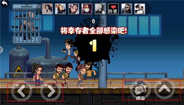 3、游戏开启后,我们的任务是把所有幸存者都感染。通过右下角和左下角的图标,能够对变异者进行操控。