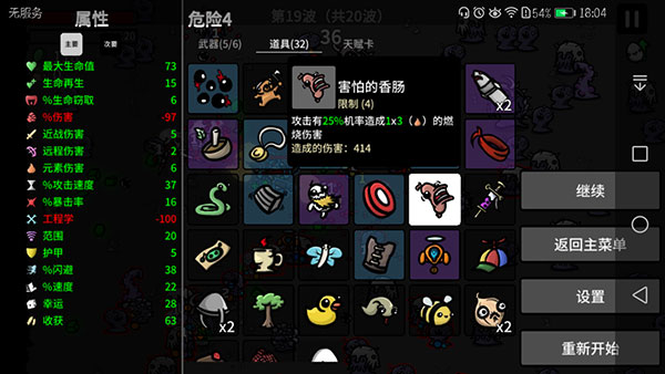 小编是在后几波才留意到香肠所具备的元素伤害,因此这一局打出的伤害不算高。不过,有了喷火器后,部分小怪还是能够被瞬间消灭的。当然,那种可以冲撞的大怪也能击杀,只是大概需要4到5秒的时间。