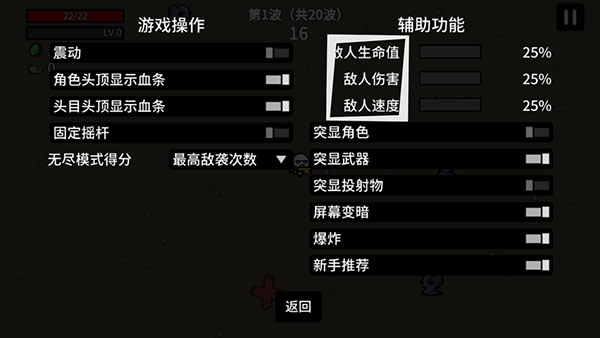 在辅助功能里,把敌人生命值、敌人伤害以及敌人速度都调整至最低程度(25%),这样就大功告成了。