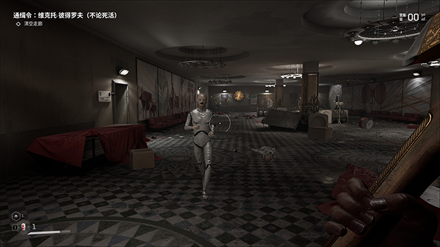 1、打开游戏,穿过大厅,来到连接上下楼的中间层时,便会触发剧情。