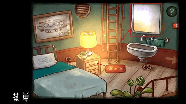 4、点击台灯下面的第一层抽屉,打开抽屉,然后点击墙上的镜子。
