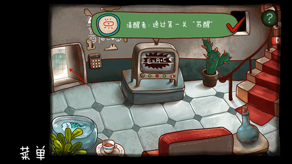 3、点击地板上的碎纸可以收集记忆碎片,点击床边的台灯插头可以打开台灯。