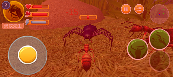 1、玩家需对自己的蚂蚁殖民地进行管理,于地底挖掘巢穴,搭建隧道与房间,用以储存食物和繁衍后代。在地表,蚂蚁们要宣称领土、收集资源,战胜可怖的蜘蛛,并击败其他蚁类殖民地。