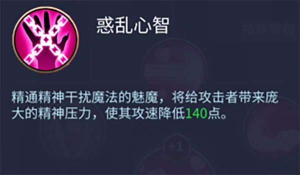 惑乱心智:精通精神干扰魔法的魅魔,将给攻击者带来庞大的精神压力,使其攻速降低140点。