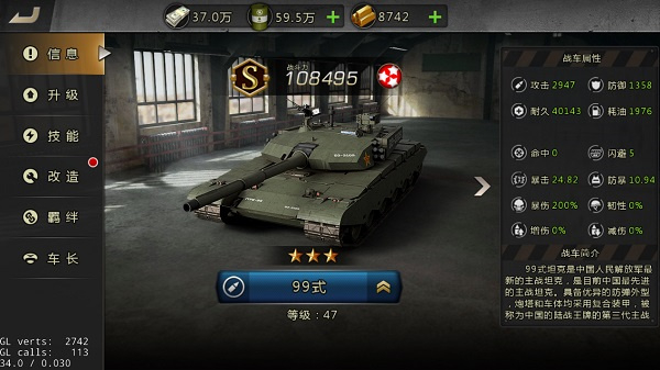 通过以上各种坦克相关的养成即可大幅提升战力,前期资源充足时推荐将所有坦克全部进行升级及改造,用坦克总战力的提升来快速拔高个人最大战力,前期个人战力越高越利于获得更多的优势及收益!