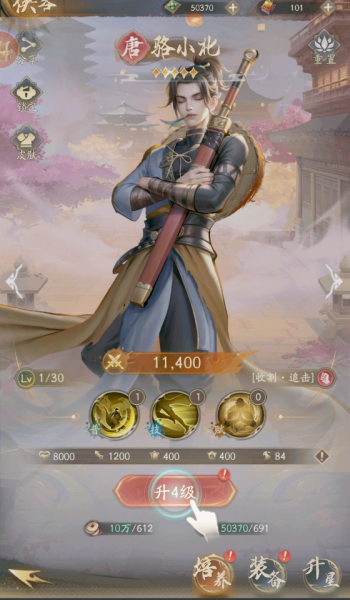 6、升级人物角色,可以提升战斗能力以及战斗值