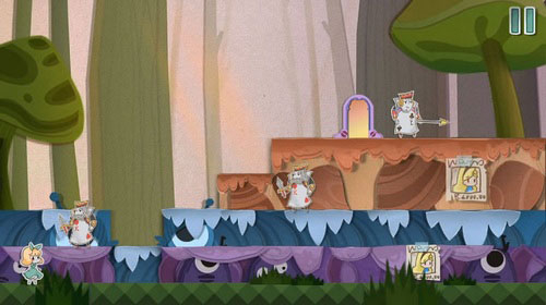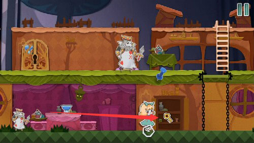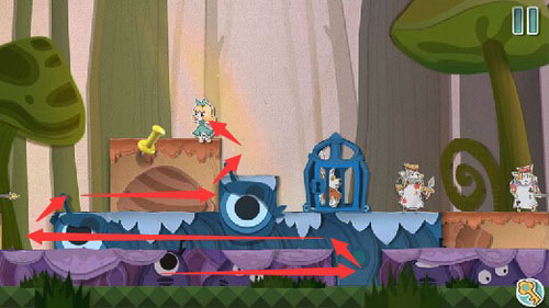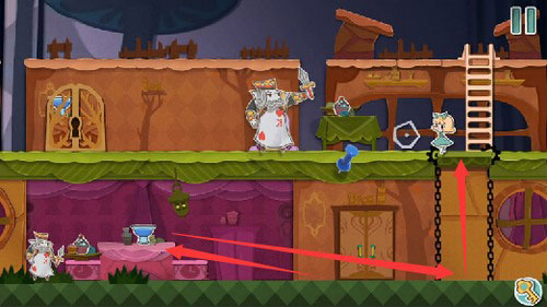 2、吃下变大蛋糕向前移动,可以将扑克兵赶走。