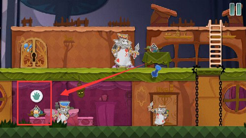 4、将扑克兵赶走,然后喝两次变小药水,进入传送门来到下一场景。