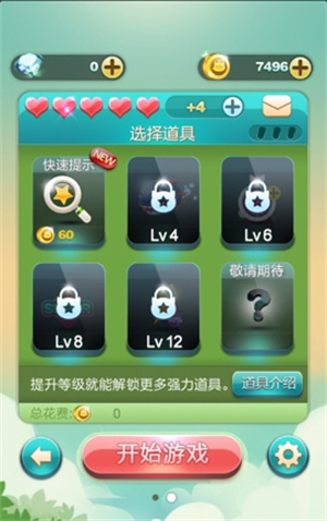 《天天爱消除》的游戏目标十分明确,即在限定时间内尽量获取更多分数。而道具则是为自己赢得更多得分契机,进而冲击排行榜的绝佳手段。游戏中的道具通过等级解锁,解锁后道具可免费试用一次。在道具选择页面,玩家能够自主挑选携带道具的类型,仅需支付对应的金币就行,若连续多次使用某一道具,还会有相应的折扣。
