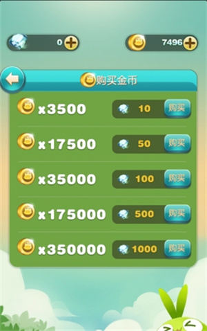 10个钻石购买3500个金币,依次类推。