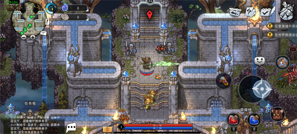 3、进入游戏后,左边控制角色的移动,而右边则是攻击、背包等按钮;