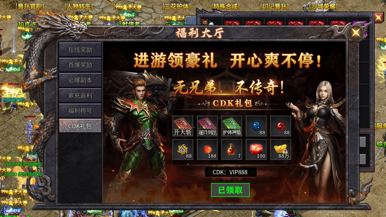 兑换方式:点击游戏上方的福利大厅,点击CDK礼包这一栏,输入礼包码即可。