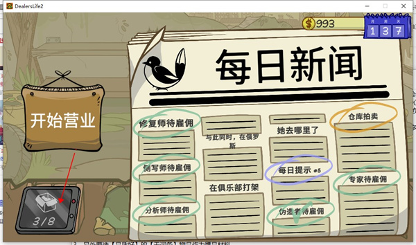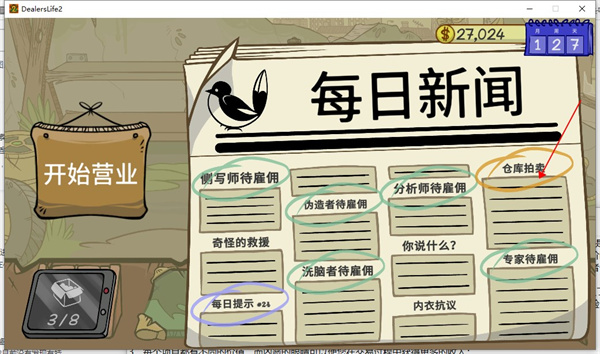 2、然后再每日新闻当中找到仓库拍卖出售获得大量收益,然后就可以探索艺术区了。