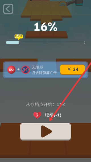 2、若球体掉落失败,在复活界面点击继续按钮消耗复活次数,从存档点10%处重新开始。