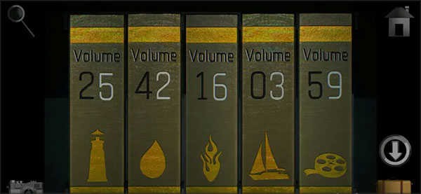 9、回到控制室把书放在书架上,按待办事项提示排列书籍顺序(灯塔、水、火、船、影片)。完成后点击保险箱随意输入五位密码,记录显示器方块「黑黑白黑白」,结合书上黑白数字得出密码「24609」。
