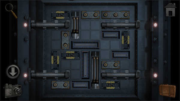16、进入地下室,点击拐角走廊墙壁的机械面板,依顺序打开盖子取得「锤子」。返回客厅用锤子砸开玻璃柜拿到「台球」,最后到游戏厅按墙上提示摆放台球。