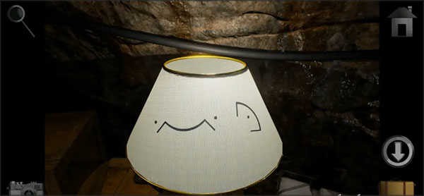 6、退出控制室走向机械室门口,点击右侧箱上的台灯装入灯泡,阅读灯罩上的提示。之后到宿舍门前,用镊子从笼中取出「拉绳」。