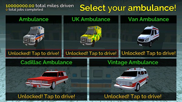 2、游戏已经修改为解锁全部救护车,你可以挑选自己喜欢的车辆。
